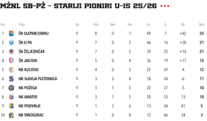 TABLICE PORETKA ŠKOLE NOGOMETA